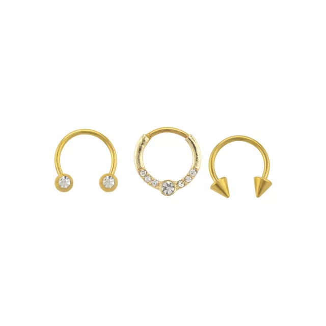 Multi-Pack CZ Goldtone Horseshoe Rings and Clicker Septum Ring 3 Pack - 16 Gauge