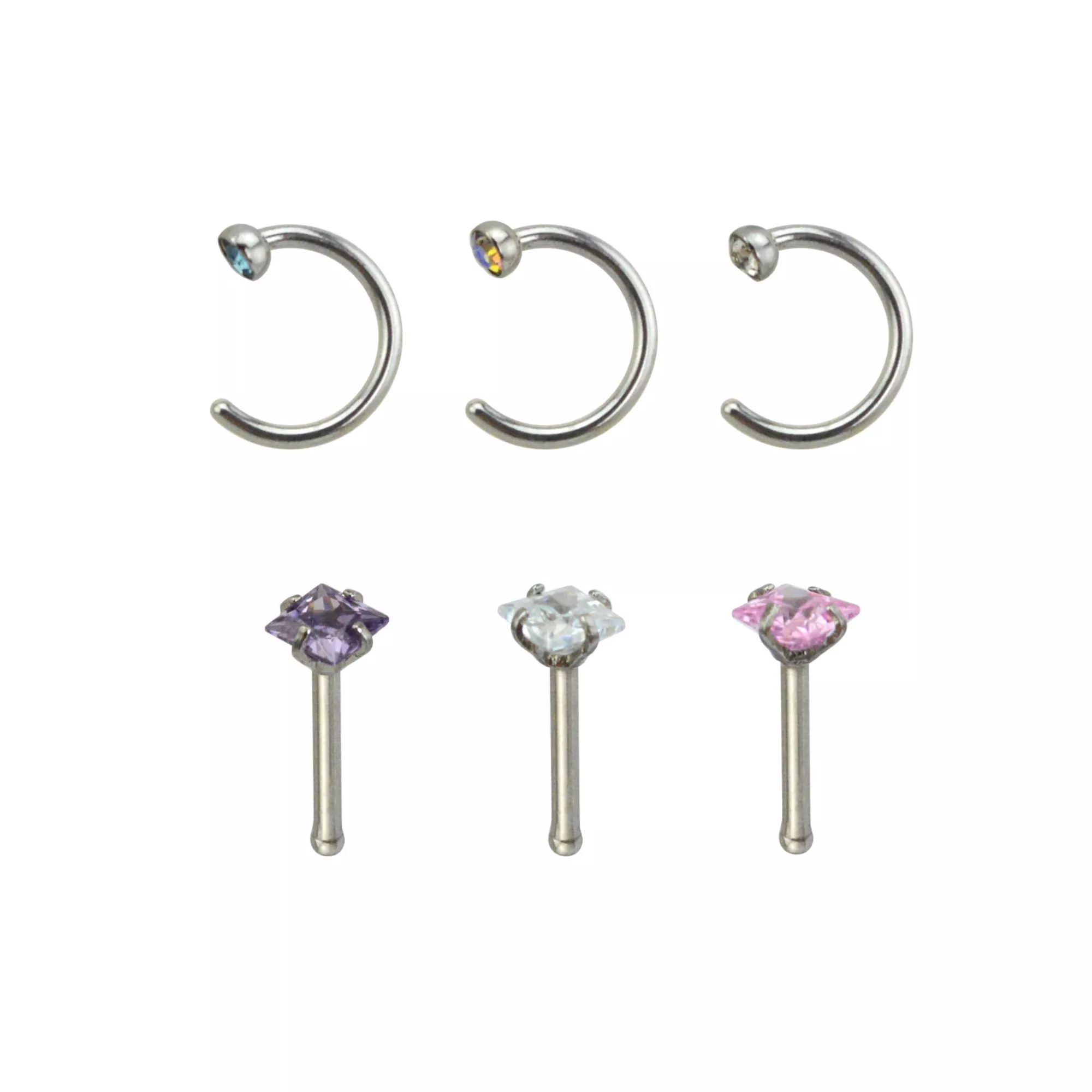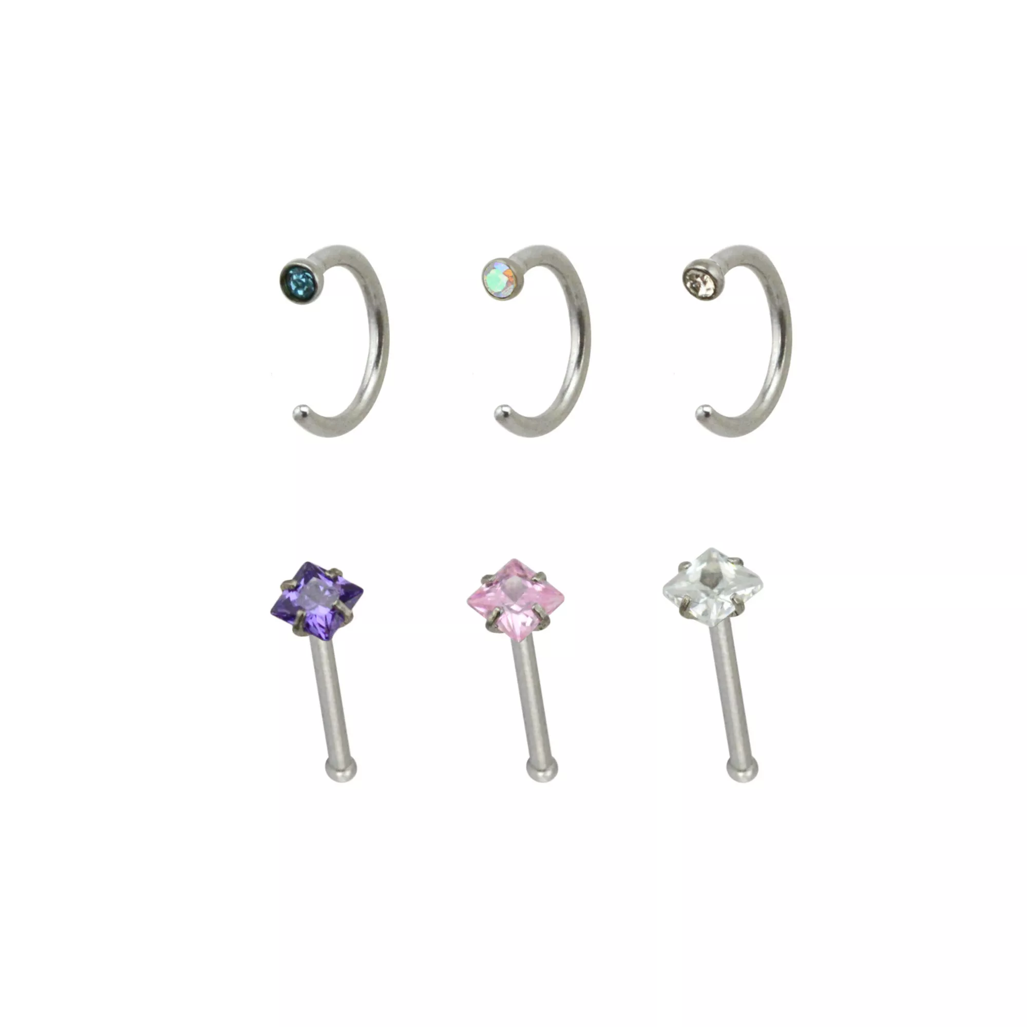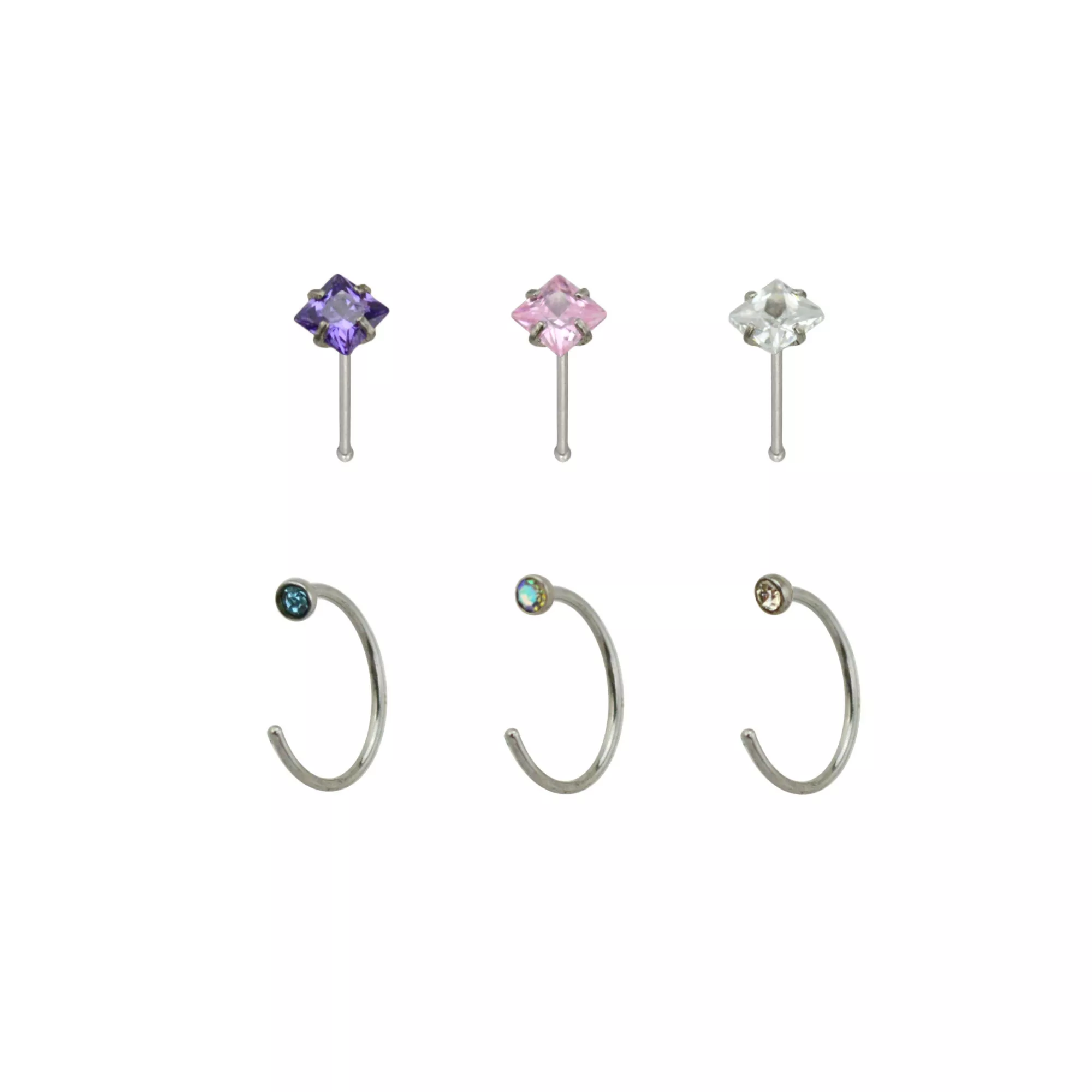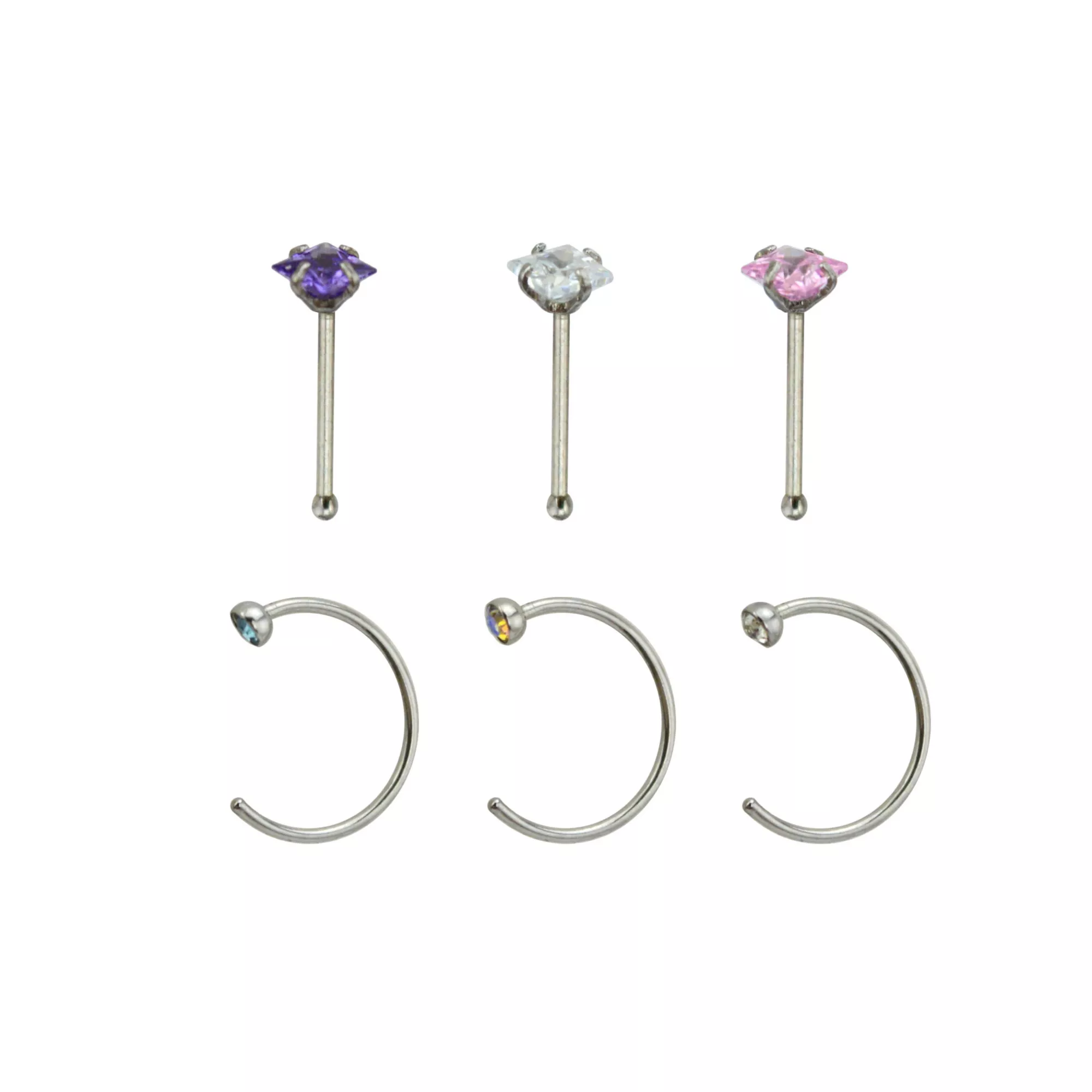 Multi-Pack CZ Hoop Nose Rings and Bone Nose Rings 6 Pack - 20 Gauge