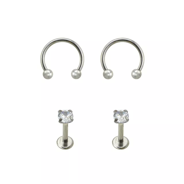 Multi-Pack CZ Horseshoe Rings and Labret Lip Rings 4 Pack - 16 Gauge
