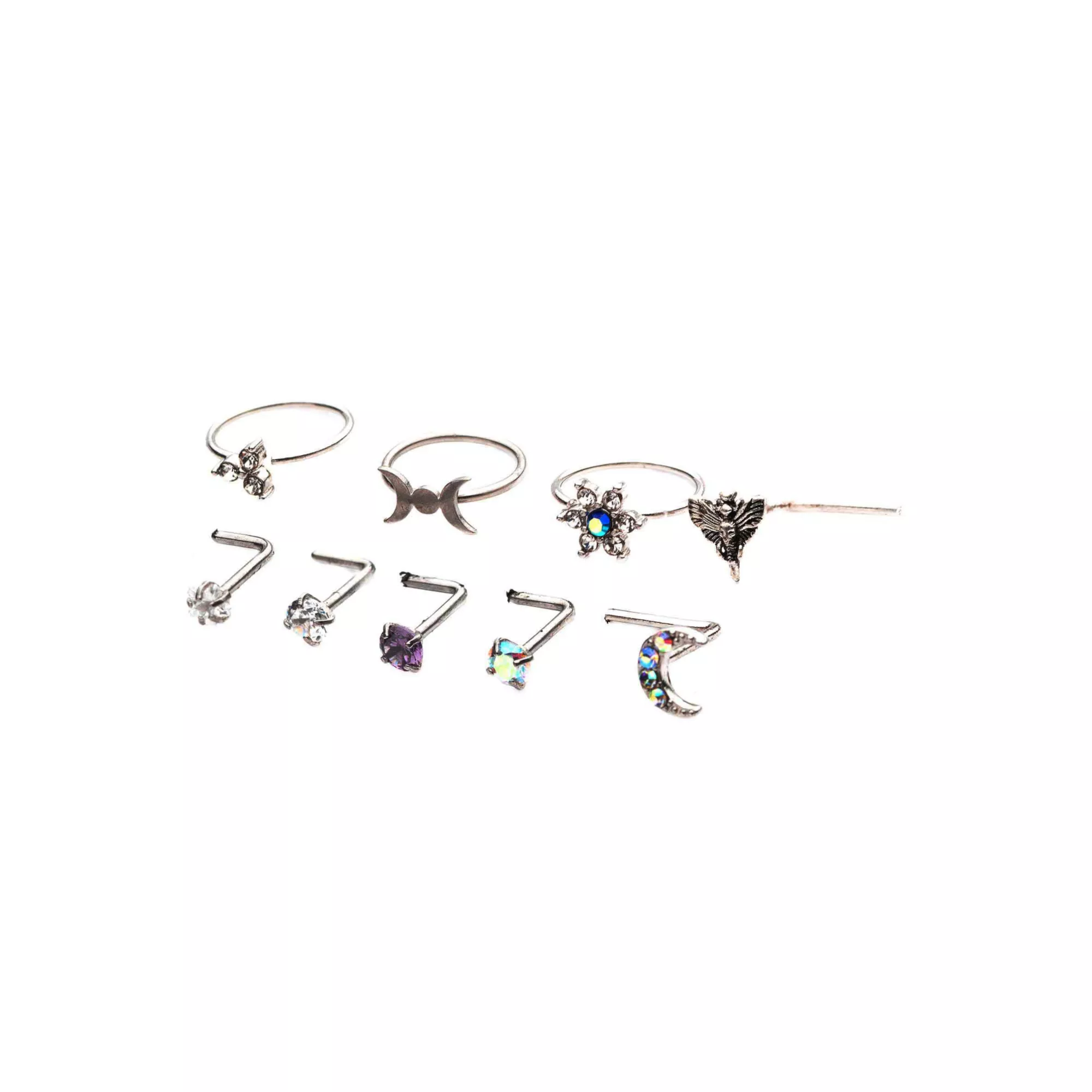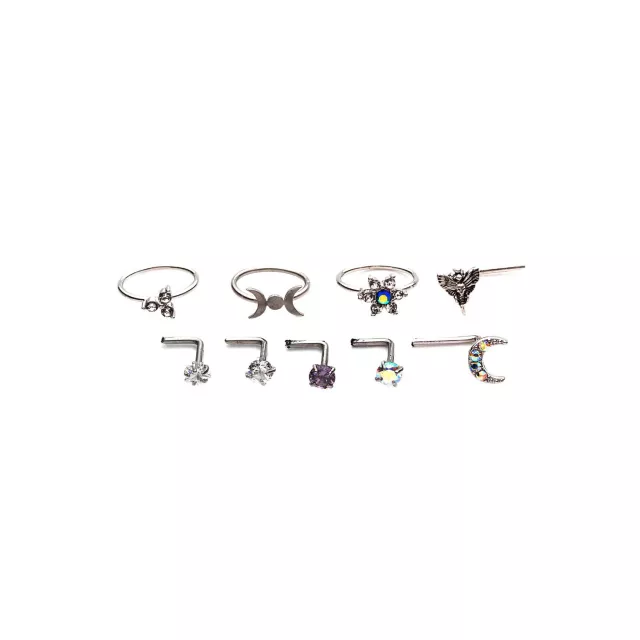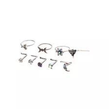 Multi-Pack CZ Moon and Star Hoops and L-Bend Nose Rings 9 Pack - 20 Gauge