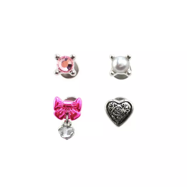 Multi-Pack CZ Pink Bow and Gothic Heart Labret Lip Rings 4 Pack - 16 Gauge
