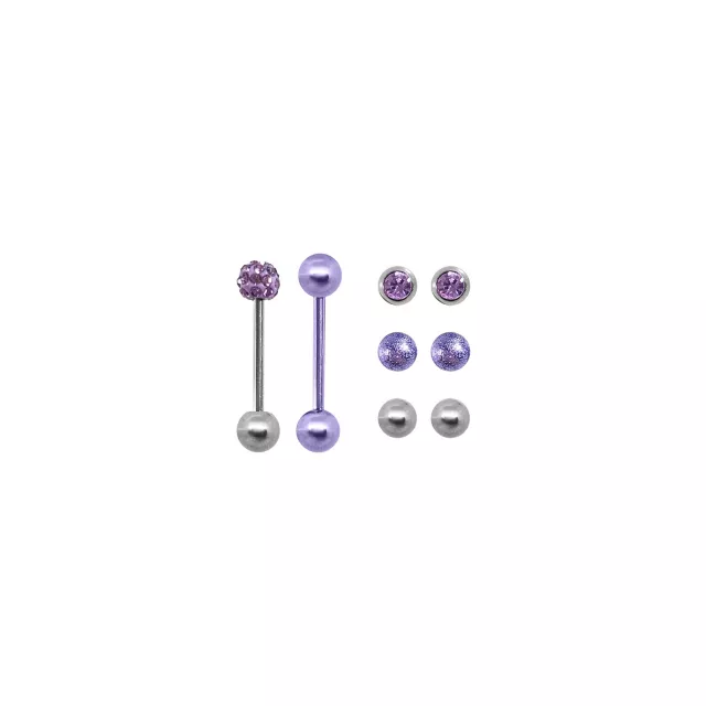 Multi-Pack CZ Purple Barbells with Extra Balls - 14 Gauge