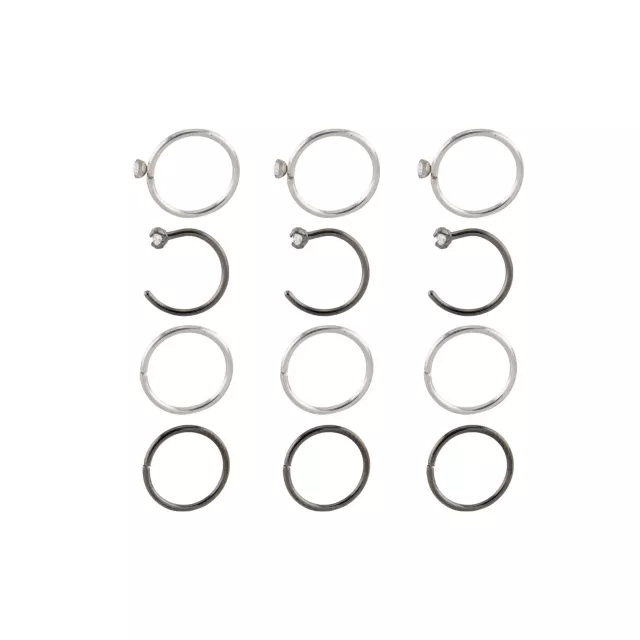Multi-Pack CZ Silvertone and Black Hoop and Half Hoop Nose Rings 12 Pack - 20 Gauge