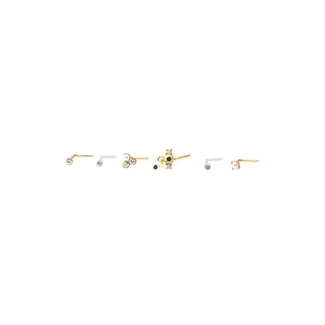 Multi-Pack CZ Silvertone and Goldtone Ornate Circle L-Bend Nose Rings 6 Pack - 20 Gauge