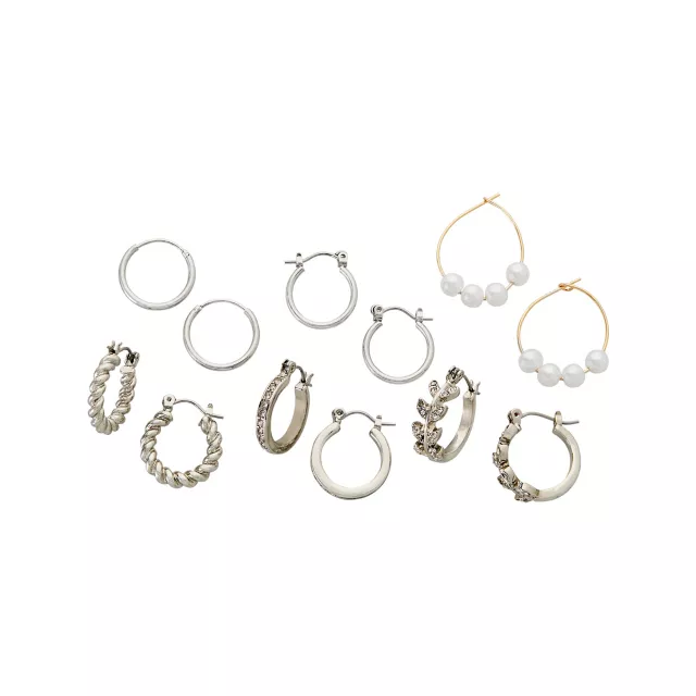 Multi-Pack CZ Silvertone Assorted Hoop Earrings - 6 Pair