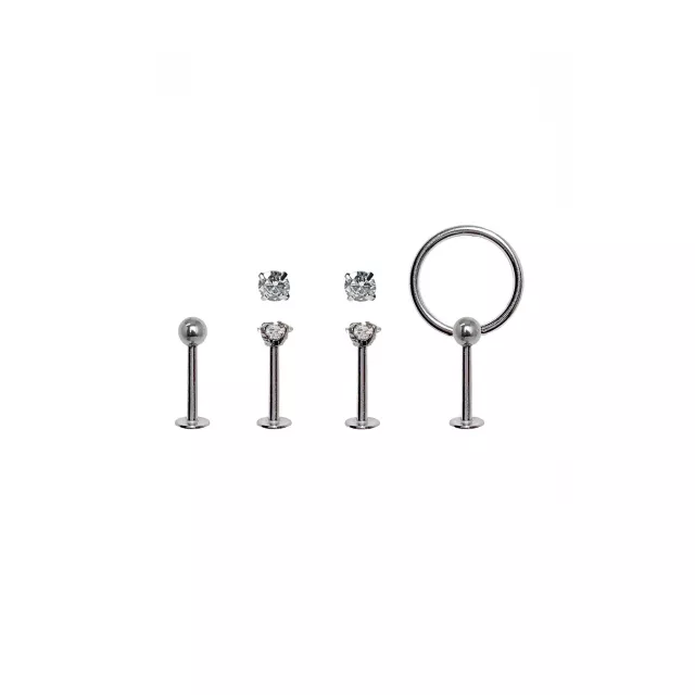Multi-Pack CZ Silvertone Hoop Labret Lip Rings 4 Pack - 16 Gauge