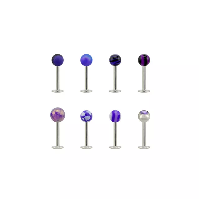 Multi-Pack CZ Silvertone Purple Labret Lip Rings 8 Pack - 16 Gauge
