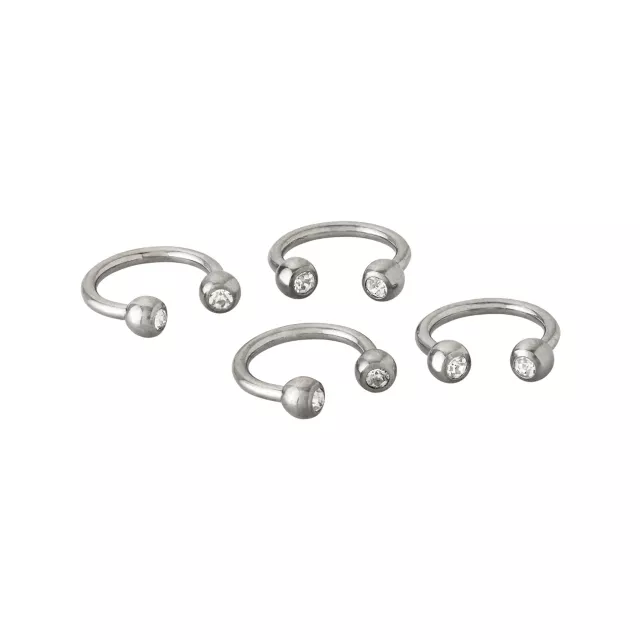 Multi-Pack CZ Silvertone Titanium Horseshoe Rings 4 Pack - 16 Gauge
