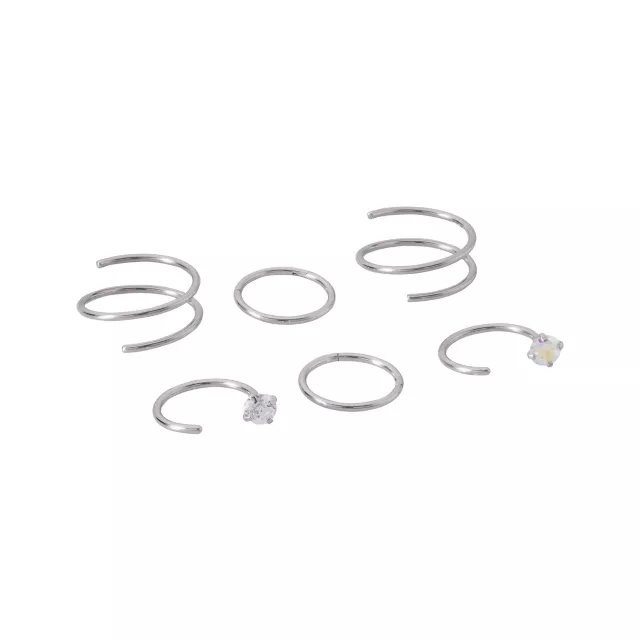 Multi-Pack CZ Spiral Double Nose Hoop and Half Hoop Nose Rings 6 Pack - 20 Gauge