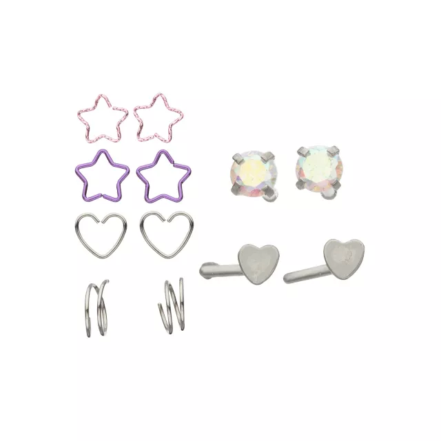 Multi-Pack CZ Star and Heart Shaped Nose Hoops and L-Bend Nose Rings 12 Pack - 20 Gauge