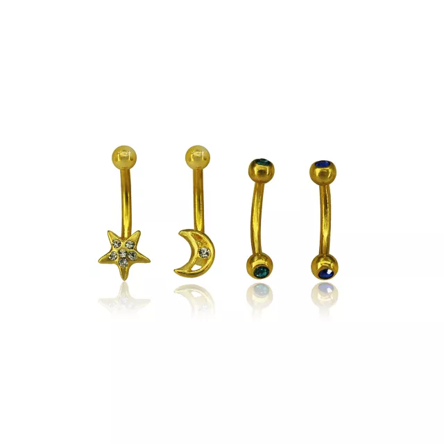 Multi-Pack CZ Star Moon Curved Barbells 4 Pack - 16 Gauge