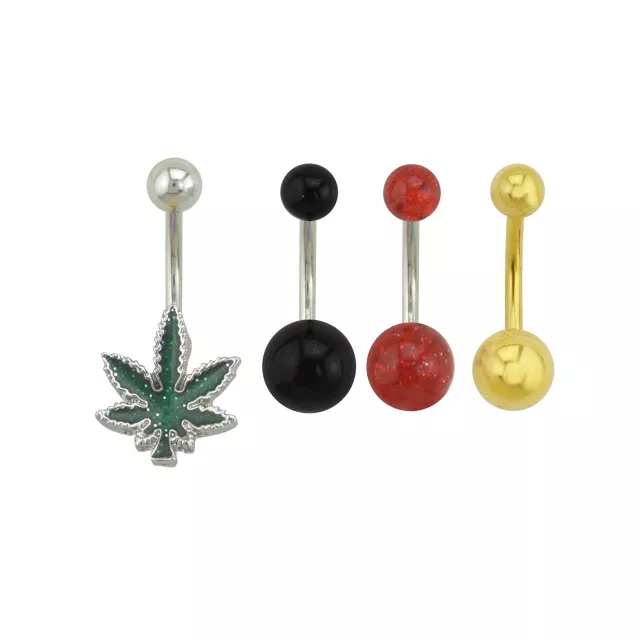 Multi-Pack Glitter Leaf Belly Rings 4 Pack - 14 Gauge