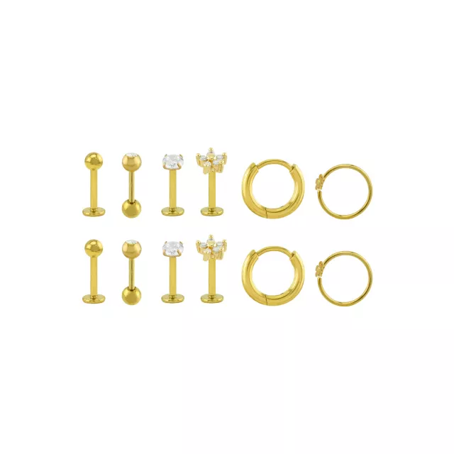 Multi-Pack Gold-Tone Daisy CZ Assorted Hoop and Stud Earrings 6 Pack - 18 Gauge