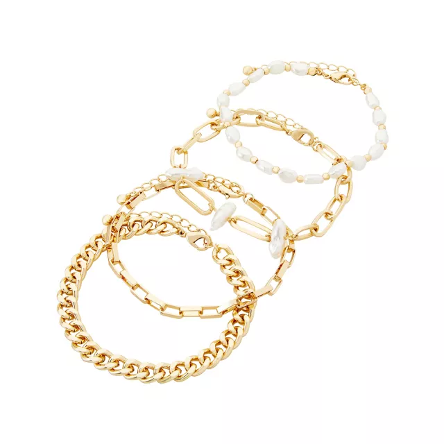 Multi-Pack Goldtone and Pearl-Effect Bracelets - 4 Pack
