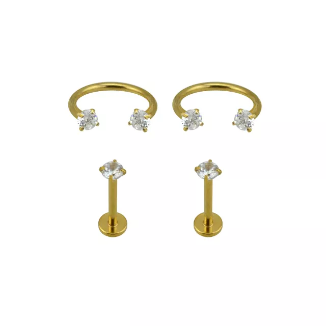 Multi-Pack Goldtone CZ Labret Lip Rings 4 Pack - 16 Gauge