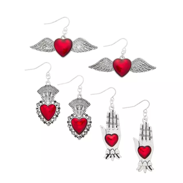 Multi-Pack Gothic Dangle Heart Earrings - 3 Pair