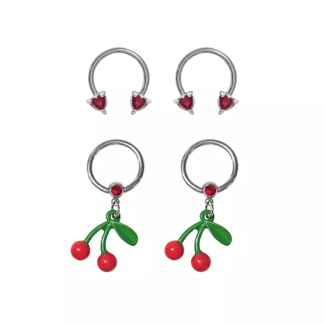 Multi-Pack Heart Horseshoe Rings and Cherry Hoops 4 Pack - 14 Gauge