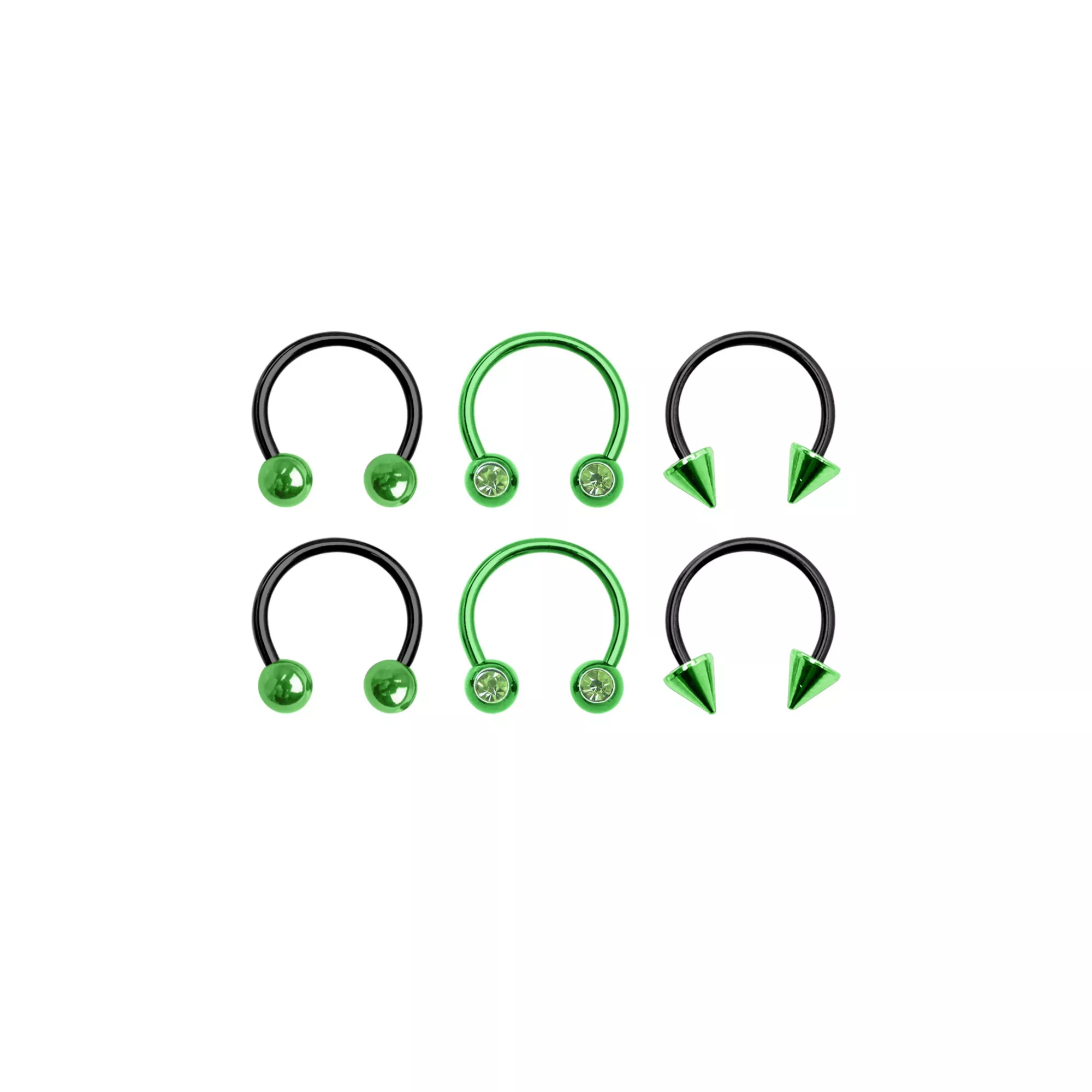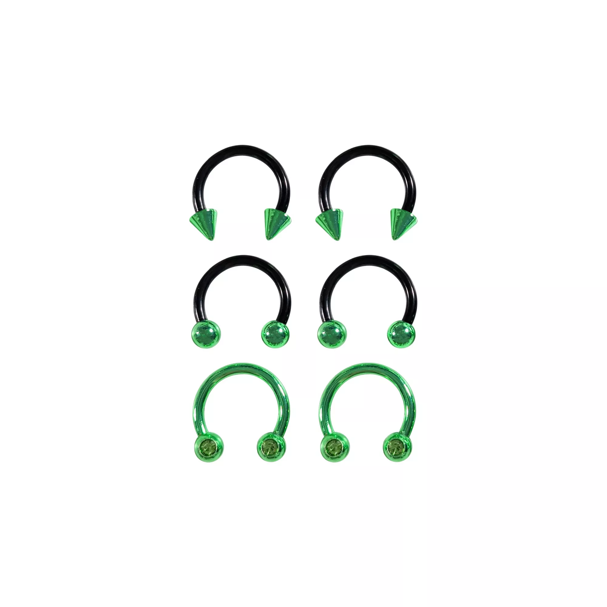 Multi-Pack Ombre Black and Green Horseshoe and Captive Rings 6 Pack - 16 Gauge