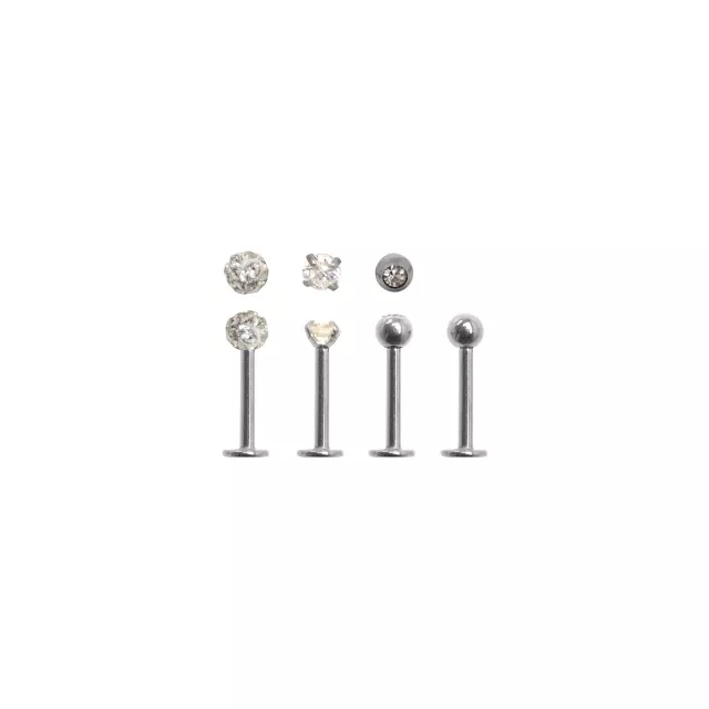 Multi-Pack Paved CZ Labret Lip Rings 4 Pack - 16 Gauge