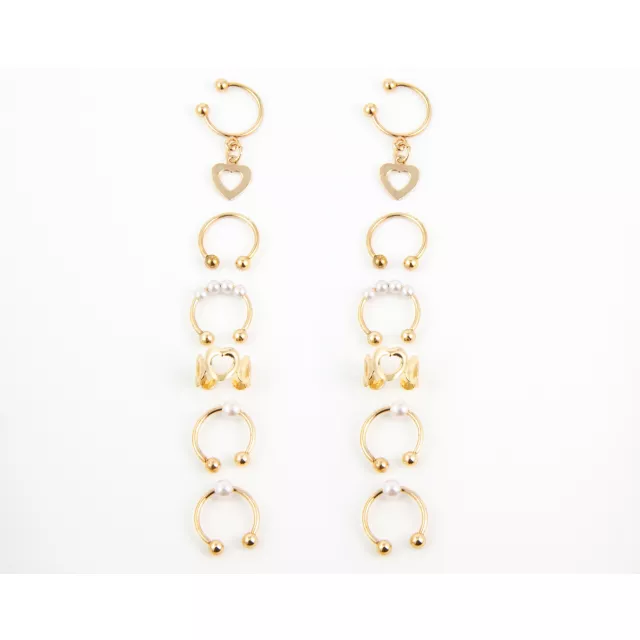 Multi-Pack Pearl-Effect Gold-Tone Ear Cuffs - 6 Pair