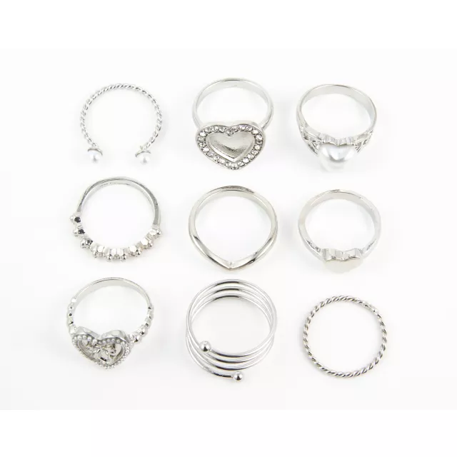 Multi-Pack Pearl-Effect Heart Rings - 9 Pack