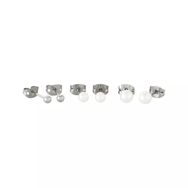 Multi-Pack Pearl-Effect Titanium Stud Earrings - 3 Pair