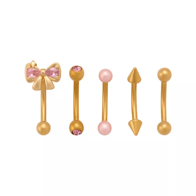 Multi-Pack Pink CZ Bow Gold-Plated Curved Barbells 5 Pack - 16 Gauge