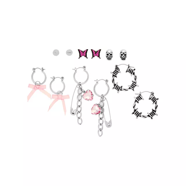 Multi-Pack Pink Dangle Bows and Heart Safety Pin Dangle and Stud Earrings - 6 Pair