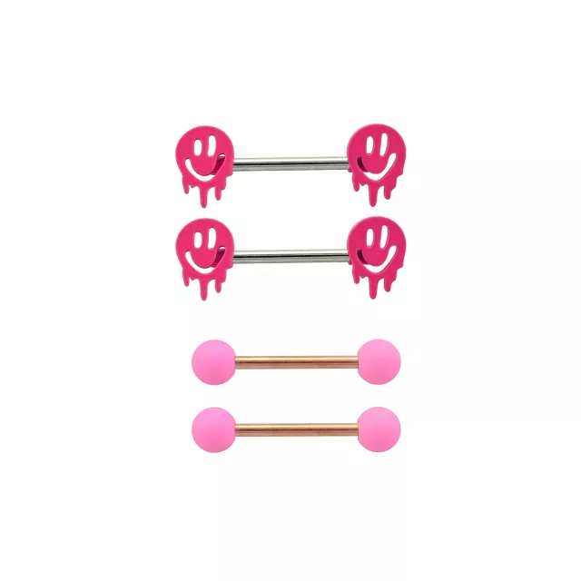 Multi-Pack Pink Drip Smiley Face Barbells 4 Pack - 14 Gauge