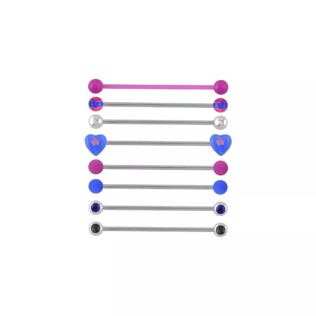 Multi-Pack Playful Pop Industrial Barbells 8 Pack - 14 Gauge