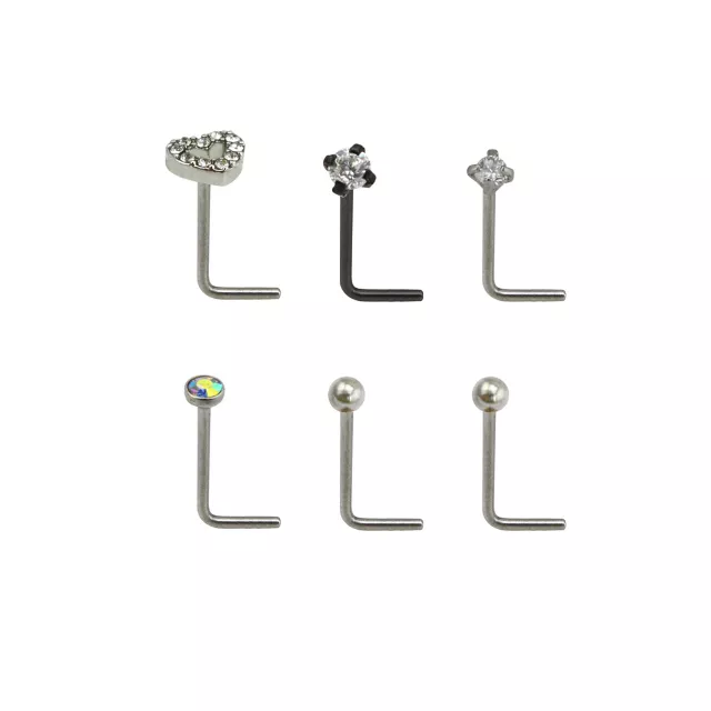 Multi-Pack Prong CZ Heart L-Bend Nose Rings 6 Pack - 20 Gauge