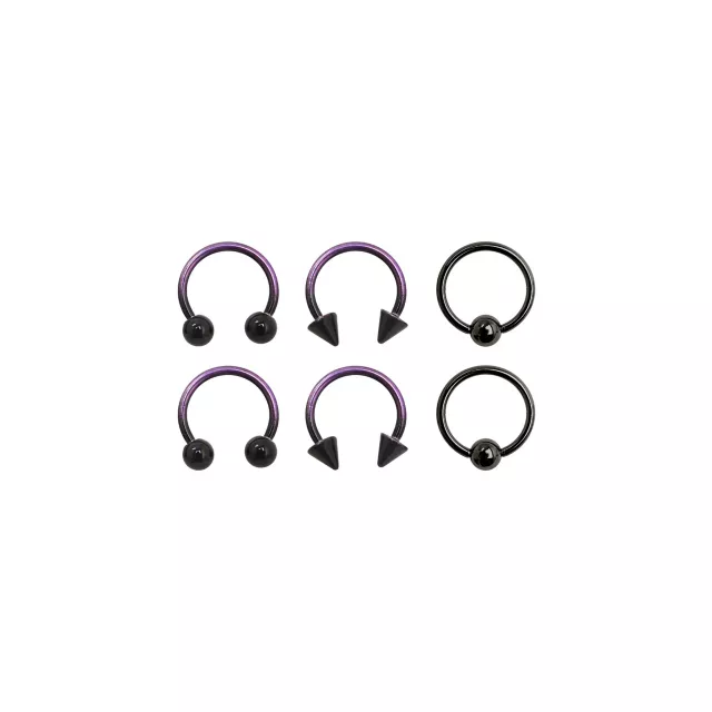 Multi-Pack Purple Ombre Horseshoe Rings and Captive Rings 3 Pair - 16 Gauge