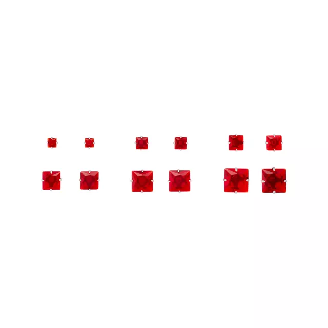 Multi-Pack Red CZ Square Silver-Plated Stud Earrings 6 Pair - 20 Gauge
