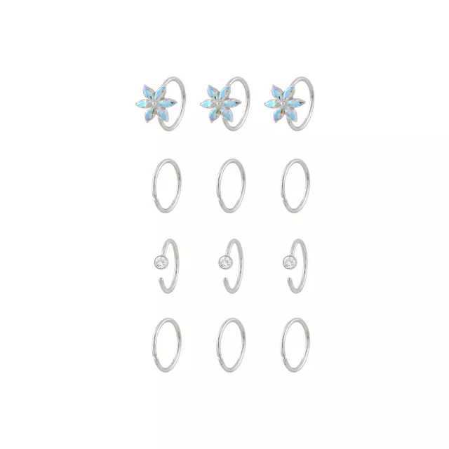 Multi-Pack Round CZ Flower Hoop and Half Hoop Nose Rings 12 Pack - 20 Gauge