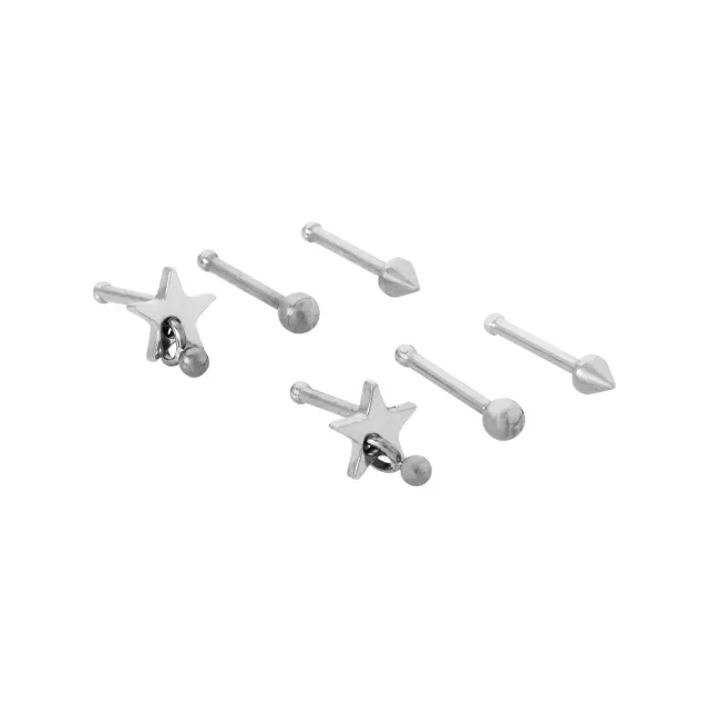 Multi-Pack Silver Titanium Star Nose Pins 6 Pack - 20 Gauge