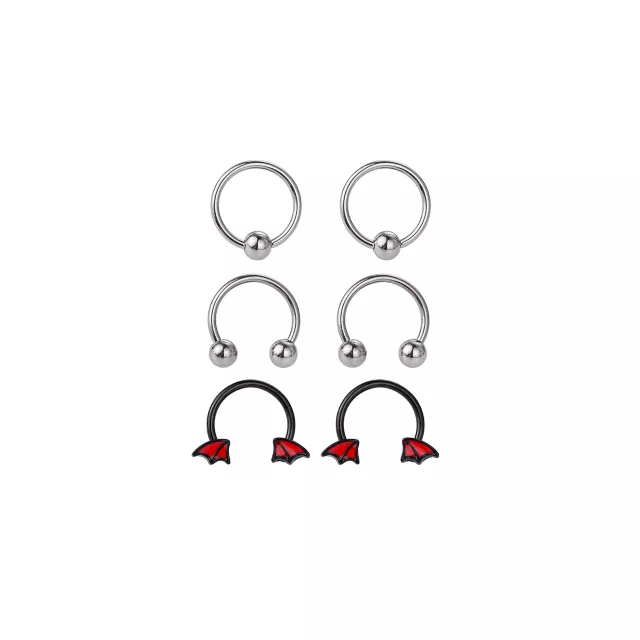 Multi-Pack Silver-Tone Devil Wings Horseshoe & Captive Bead Rings 6 Pack - 16 Gauge