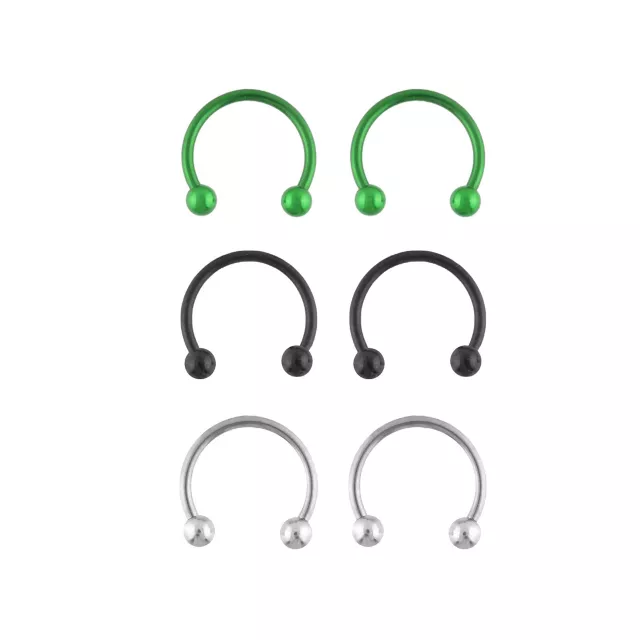 Multi-Pack Silvertone Black and Green Horseshoe Rings 3 Pair - 14 Gauge