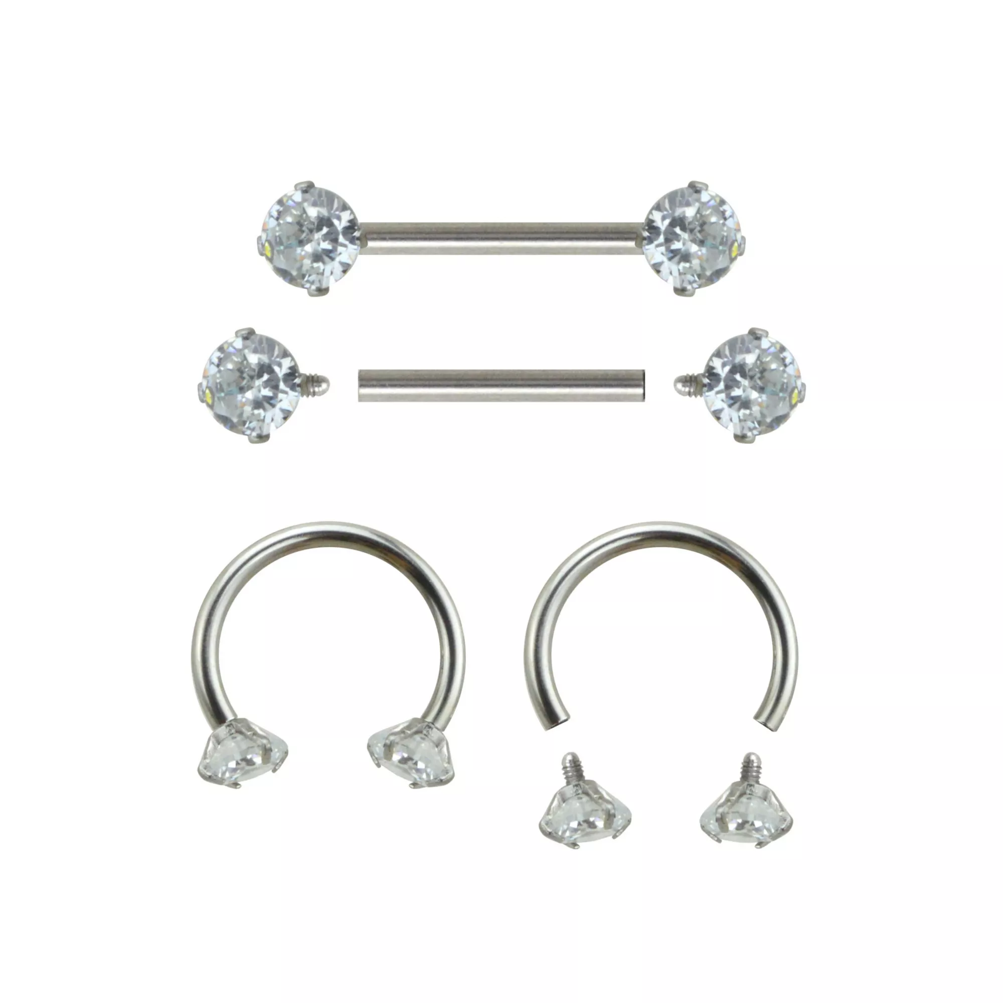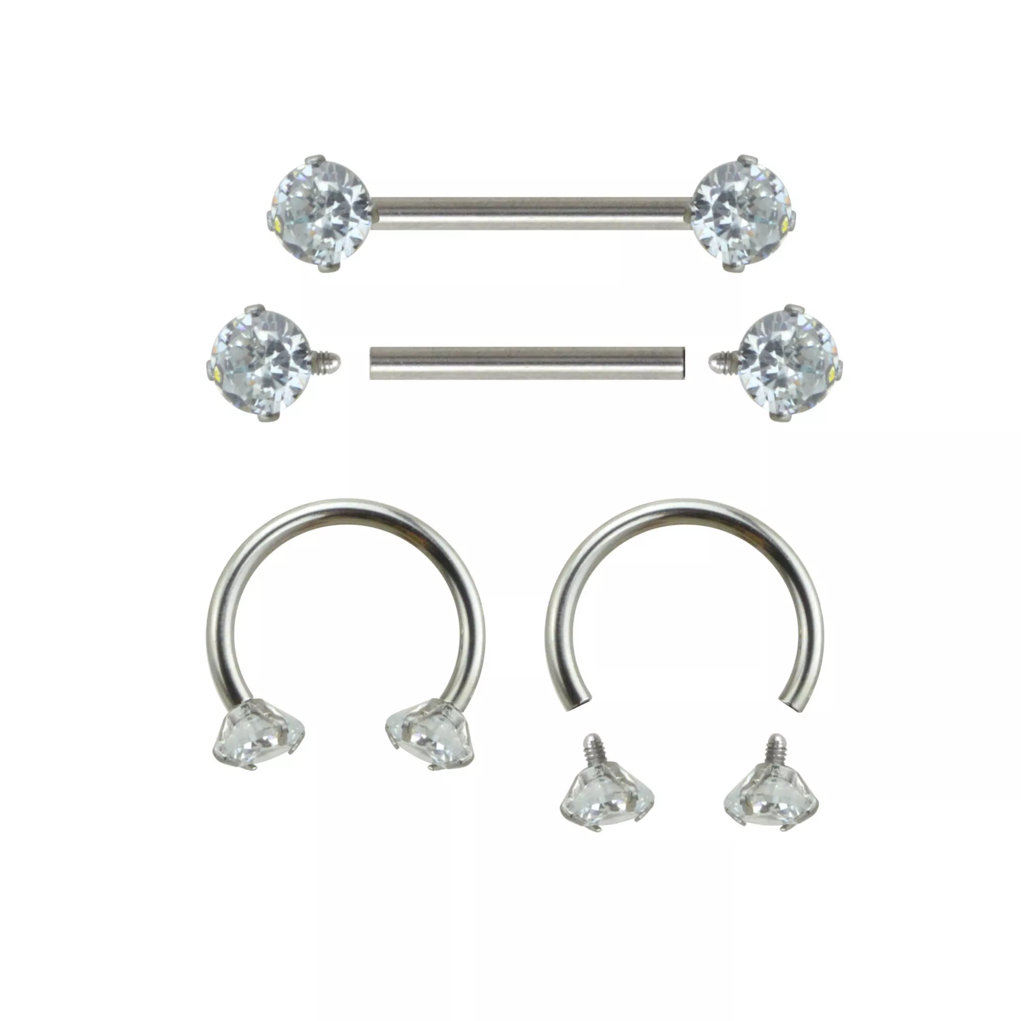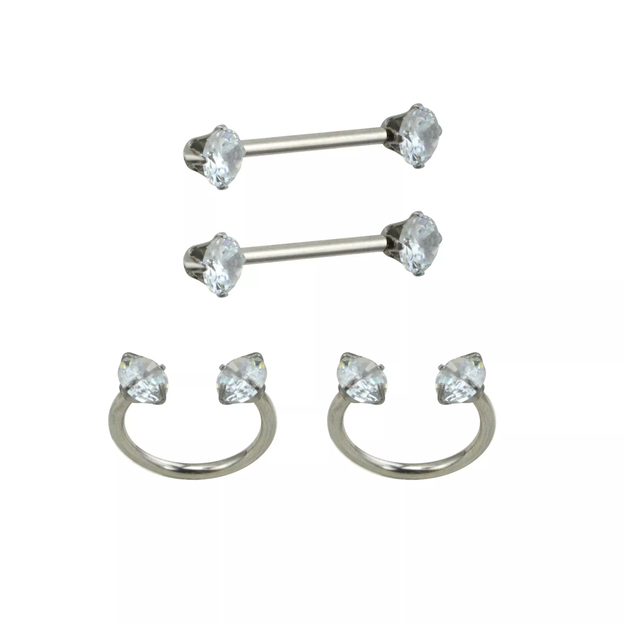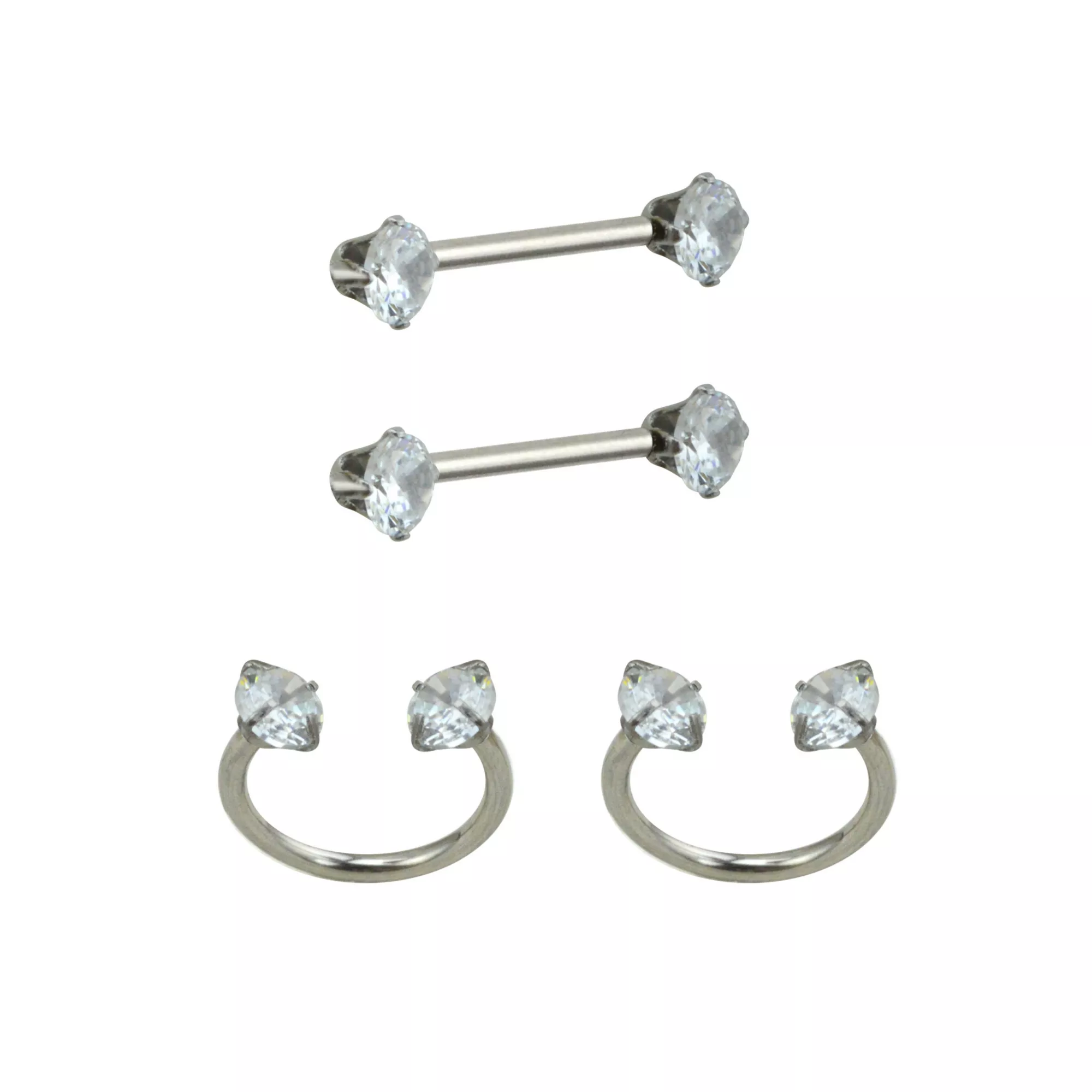 Multi-Pack Silvertone CZ Nipple Rings 2 Pair – 14 Gauge