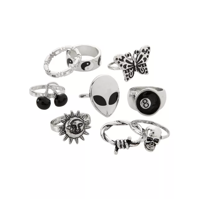 Multi-Pack Silvertone Statement Rings - 7 Pack