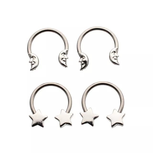 Multi-Pack Space Silver-Plated Titanium Horseshoe Rings 2 Pair - 16 Gauge