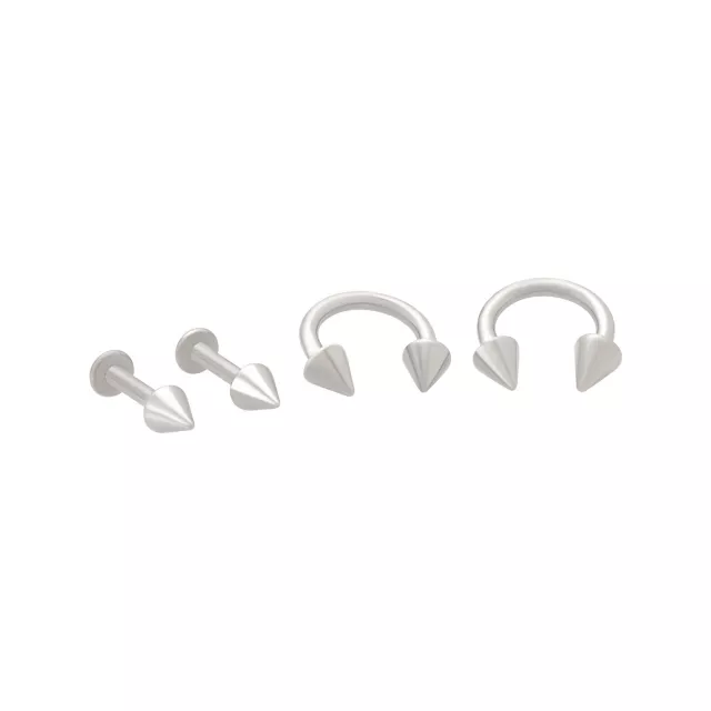 Multi-Pack Spike Silver-Plated Titanium Horseshoe and Labret Lip Rings 4 Pack - 14 Gauge
