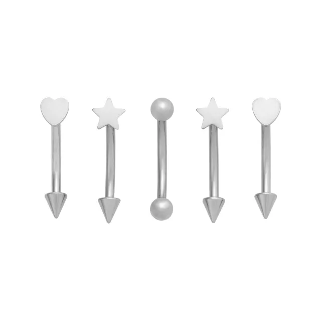 Multi-Pack Star and Heart Silver-Plated Curved Barbells 5 Pack - 16 Gauge