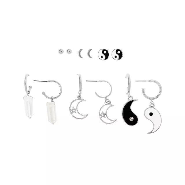 Multi-Pack Yin Yang and Moon Hoop and Stud Earrings – 6 Pair