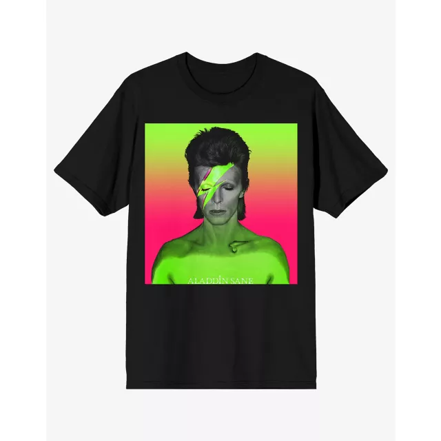Immerse yourself with visions of sake and strange divine when you rock out in this officially licensed Neon Aladdin Sane T Shirt! Sport this stylish Bowie tee and everyone will know that you've got the best taste in music.