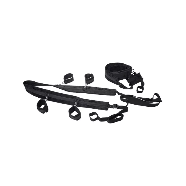Get your kinky play on wherever you go with this No Matter Where Bondage Restraint System! This easy to use set of portable restraints can be used on your bed or preferred furniture. With adjustable straps and cuffs, you get enjoy bondage while you travel or at home for a hot time.