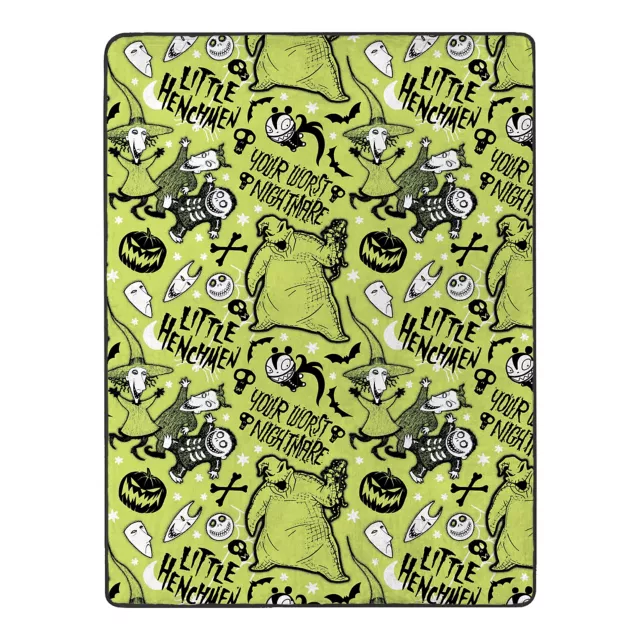 Love The Nightmare Before Christmas? Your favorite movie will be even more enjoyable when you cuddle up with this officially licensed Oogie Boogie's Little Henchmen Fleece Blanket! Featuring Lock, Shock, Barrel, and Oogie Boogie this blanket will let everyone know how much you love the film.