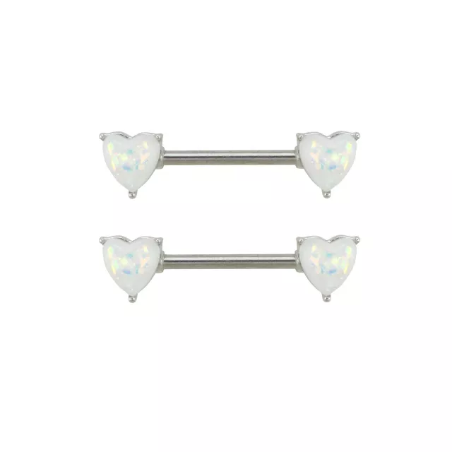 Opal-Effect Heart Nipple Barbells - 14 Gauge