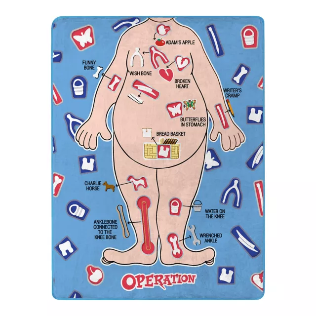 Don't get zapped! Keep warm and show off your love for Operation with this Operation Board Fleece Blanket. Wrap yourself in this fleece blanket and you'll always stay warm during the next family game night.