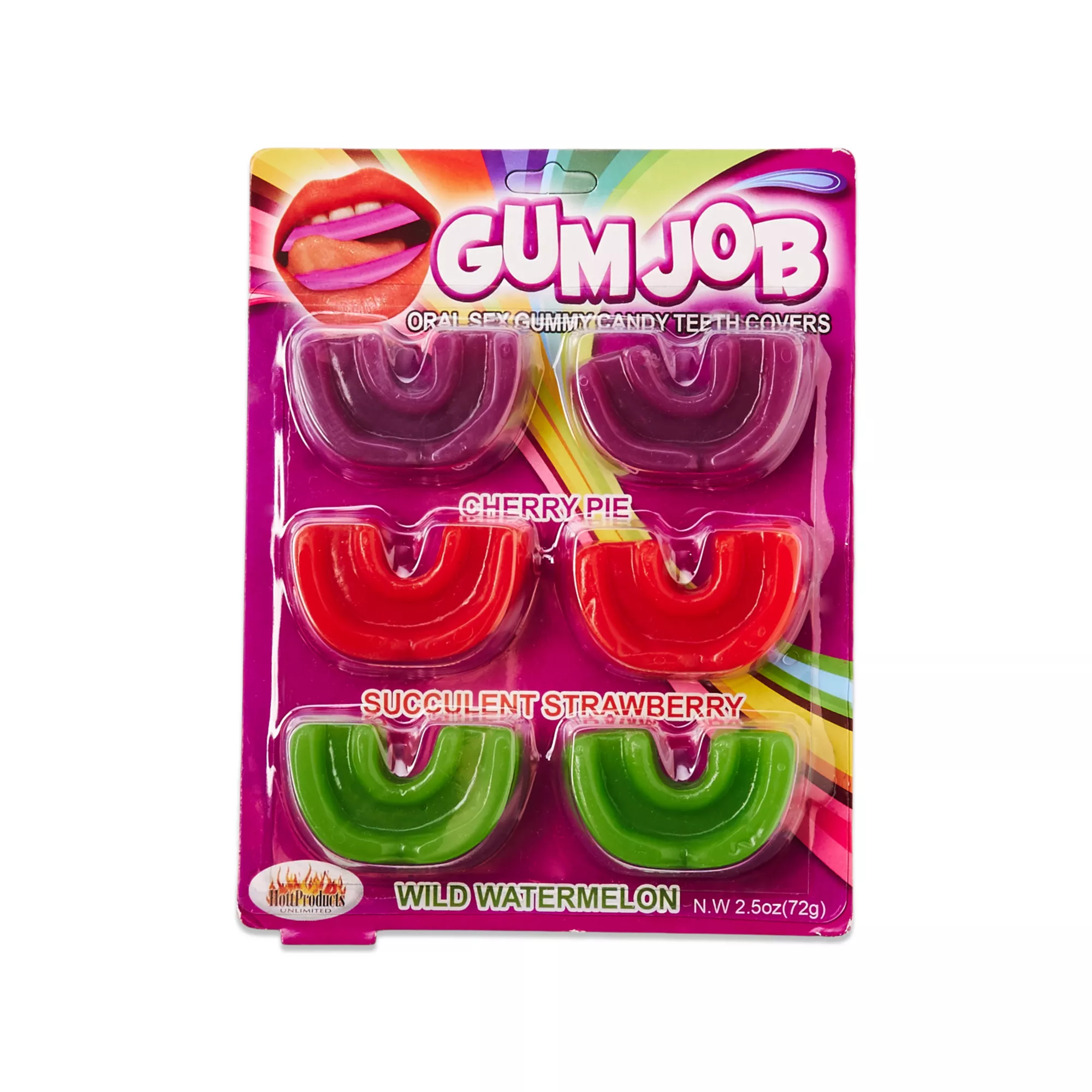 Enhance the fun down below with "GUM JOB" Oral Sex Gummy Candy Teeth Covers! Considered the perfect novelty gift, these flavor-filled candy teeth covers are easy to use, fit over most teeth and taste delicious! These Oral Sex Teeth Covers work best if you soften the candy before your sexual fun begins.