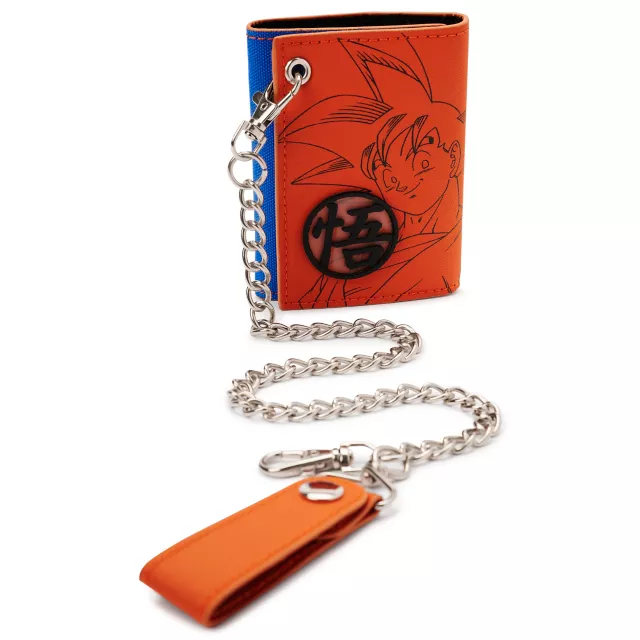 This officially licensed Orange Dragon Ball Z Bifold Chain Wallet is perfect for any anime fan. This wallet features an epic Goku outline with trendy chain design, and includes 3 credit card slots, 1 ID slot, and 1 cash compartment.